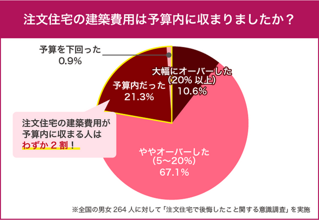 今回のアンケート調査では、建築費用が予算内に収まったと回答した人は、わずか2割程度という結果が明らかになりました。