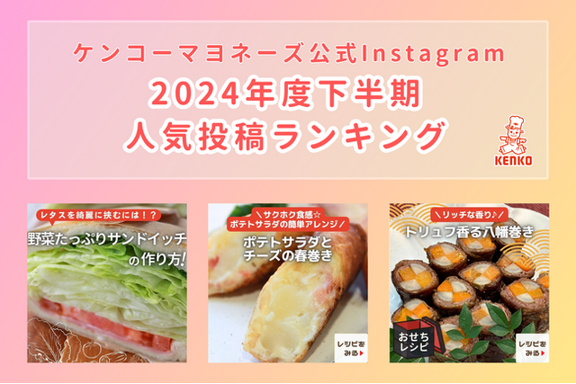 ケンコーマヨネーズ株式会社(東京本社:東京都杉並区、代表取締役社長:島本 国一、以下「当社」)は、当社で運用する公式Instagram(@kenko_mayo)の2024年度下半期における人気投稿ランキングをご紹介いたします。