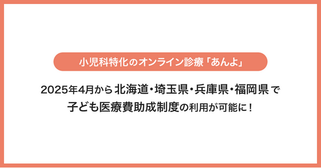 4月から北海道、埼玉県、兵庫県、福岡県在住の方が子ども医療費助成制度を利用して本サービスを使うことが可能になりました。
