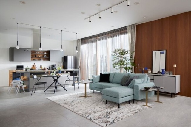 食事もくつろぎもひとつのソファで楽しむ「ラウンジスタイル」など、空間をゆったり使う工夫も随所に。