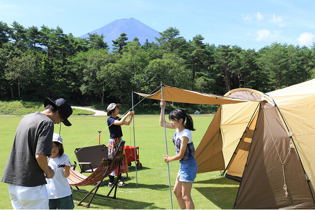 山梨県・富士河口湖町、富士山の麓にあるキャンプ場「すばるランド CAMP FIELD(すばるランド キャンプフィールド)」は、電源付きサイト1区画を含んだ全23区画(天然芝)のオートサイトで、シャワー棟やトイレ、炊事場を完備した富士すばるランド隣接のキャンプ場です。