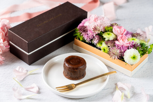 選べるフォンダンショコラとフラワーボックスのセットは、定番のとろけるチョコレートの「フォンダンショコラ」か、イベント期間限定の「ストロベリーフォンダンショコラ」から選べる贅沢なフォンダンショコラと、華やかな生花を使用したフラワーボックスのセット。