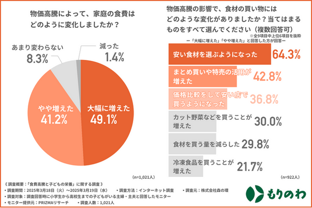 そこで今回、株式会社森の環(https://morinowa.co.jp/)は、小学生から高校生までの子どもがいる主婦・主夫を対象に、「食費高騰と子どもの栄養」に関する調査を行いました。