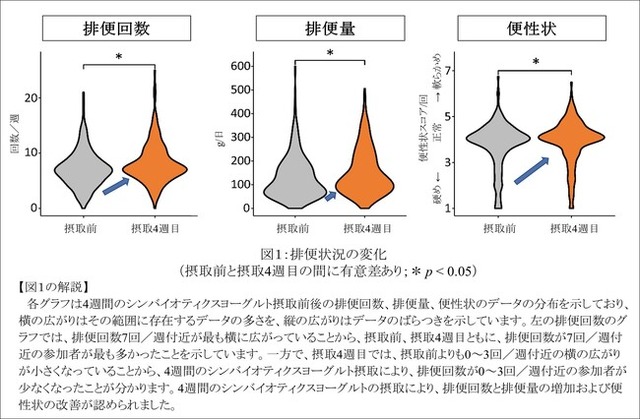 シンバイオティクスヨーグルトを4週間摂取することにより、以下の結果が得られました。