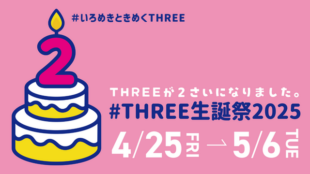ひとりでも多くのお客様と一緒にTHREEの2さいのお誕生日をお祝いできることを、楽しみにしております。