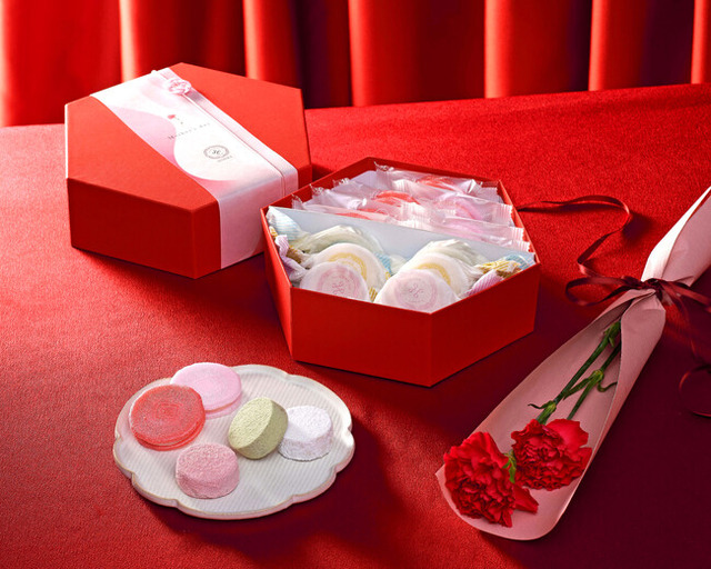 春らしい彩りのふやきにクリームをサンドした“彩ふわり”、お口に入れるとほろほろ溶ける“春のクッキー (ポルボロン)”を詰め合わせました。華やかな味わいが母の日の贈りものにぴったりです。