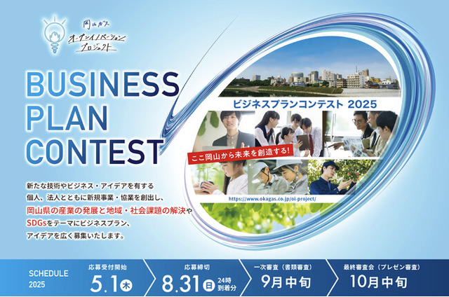 岡山ガス株式会社(本社:岡山市中区桜橋、以下岡山ガス)は、岡山ガス オープンイノベーション プロジェクトとして『ビジネスプランコンテスト2025』を開催します。本事業は、岡山県内の有望な人材とプランの発掘、育成を進めるため、新たな技術やビジネス・アイデアを有する個人、法人とともに新規事業・協業を創出し、岡山県の産業の発展と地域・社会課題の解決を図り、地域活性に貢献することを目的としています。4期目となる本事業は昨年に引き続き、岡山県内の全ての市町村のご後援も決定致しました。
