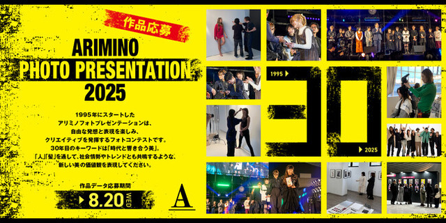 『アリミノフォトプレゼンテーション』は国内外の美容師と美容学校に通う学生を対象に、髪型(ヘアデザイン)のほか、ファッション、メイク、シチュエーションを含め、写真全体で美しさを表現する場として1995年からスタート。今年で30周年を迎える同コンテストは、美容業界だけでなく社会全体を盛り上げていくことを目指し、受賞作品以外の応募作品も当社ホームページ、各種SNSを通じ公表していく予定です。