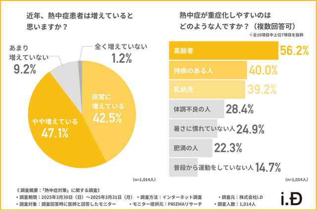 株式会社i.D(所在地:東京都港区、代表取締役:堀井 昭一)は、医師を対象に、「熱中症対策」に関する調査を実施しました。