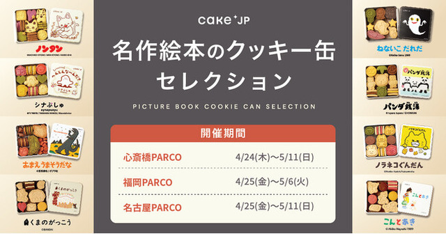 ケーキ・スイーツ専門通販サイト「Cake.jp(ケーキジェーピー)」を運営する株式会社Cake.jp(本社:東京都新宿区、代表取締役:高橋 優貴)は、4月24日(木)から、心斎橋PARCO、福岡PARCO、名古屋PARCOにてCake.jpと大人気の絵本がコラボしたオリジナルクッキー缶を購入いただけるポップアップストア「名作絵本のクッキー缶セレクション by Cake.jp」を期間限定で出店します。