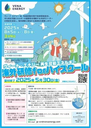 ヴィーナ・エナジーは、気候変動対策や地球環境保全、また再生可能エネルギーの重要性を理解する次世代リーダーを育成することを目的とし、高校生に向けて海外研修プログラムを実施します。
