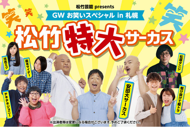 安田大サーカス、チキチキジョニー、松原タニシ、ミクミクサイダー、駆け抜けて軽トラの5組。
