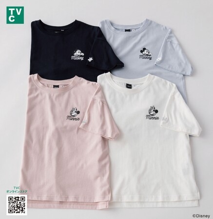 ディズニーキャラクターは世界中で愛されている人気のキャラクターです。TVCでは、大人がキャラクターモチーフのTシャツを着やすいようにシンプルなデザインで企画しました。「ミッキー/プリントTシャツ」と「ミニー/プリントTシャツ」では青や白などの無地をベースに、キャラクターが胸にワンポイントとしてプリントされています。