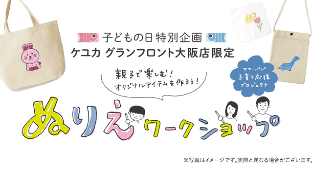 KEYUCAは、育児に奮闘するママやパパ、そしてその家族に寄り添い、育児を共に頑張りたいという思いから生まれた「ママ・パパ 子育て応援プロジェクト」の一環として、昨年2月に開催し、大変ご好評いただいた親子向けワークショップを、今年はこどもの日を記念して開催します。この特別なワークショップでは、iPadを使ってKEYUCAのオリジナルイラストを塗り絵し、アイテムにプリントして自分だけのオリジナルアイテムを作成できます。