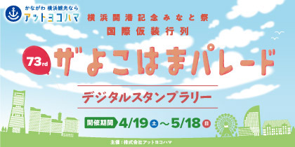 株式会社アットヨコハマ(本社:横浜市神奈川区栄町7-1/代表取締役:上野健彦・宮原漢二)※は、国際仮装行列実行委員会(横浜商工会議所事業推進部内)と連携し、ザよこはまパレードのコース沿道を中心に、デジタルスタンプラリーを4月19日(土)から5月18日(日)まで実施いたします。