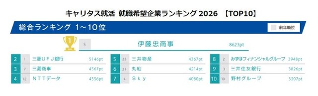 キャリタス就活 就職希望企業ランキング2026 【TOP10】