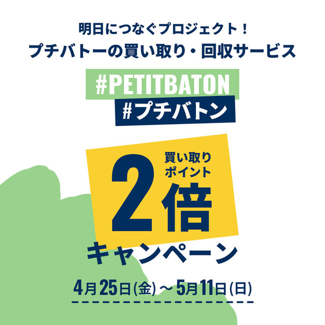 プチバトーは、不要になったプチバトーの買い取り・回収サービス「#プチバトン」の買い取りポイント2倍キャンペーンを、ゴールデンウィーク期間の2025年4月25日(金)から5月11日(日)まで開催します。