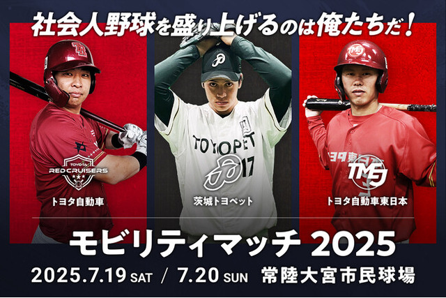 茨城トヨペット株式会社(本社:茨城県水戸市)が運営する「茨城トヨペット硬式野球部」は、2025年7月19日(土)・20日(日)に「モビリティマッチ2025」を開催し、「トヨタ自動車硬式野球部」、「トヨタ自動車東日本 硬式野球部」と対戦いたします。