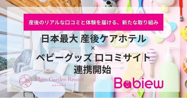 こうした産後ケア施設の需要の高まりを受け、べビューは、助産師による夜間授乳サポートをはじめとする豊富なケアサービスを提供し、ママの早期の心身回復を支える日本最大の産後ケアホテル「マームガーデンリゾート葉山」との連携を決定しました。べビューは、ベビーグッズの口コミサイトにとどまらず、ママとパパの産前産後の体験価値向上に取り組みます。