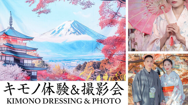 日本の和を感じさせる特設撮影ブースにて、プロカメラマンによる【無料!キモノ体験&写真撮影会】を開催します。