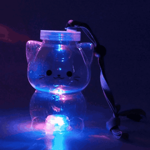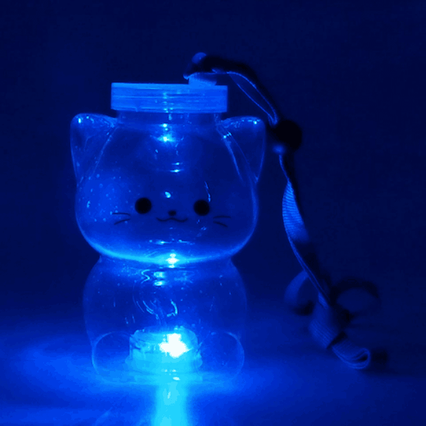 本商品は、ネックストラップ付きで持ち歩きもラクラクな、ネコちゃん型の光るボトル。