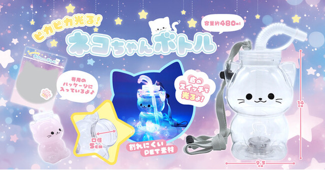 首からさげて、光ってかわいい!ネコちゃん型の“光るボトル”が新登場です!