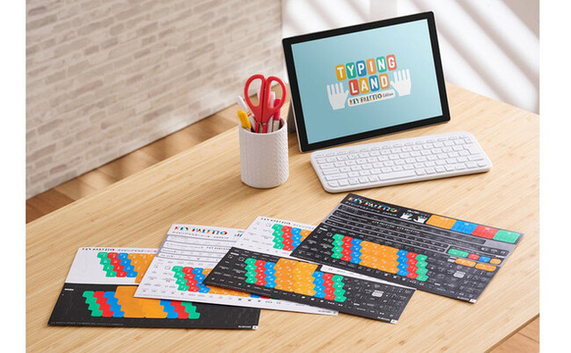 キーの印字や読み方、正しい指の位置まで、わかりやすく学習できるシールです。キーを色分けすることで正しいタイピングが身につくと好評な、子ども向けキーボード“KEY PALETTO”を、既にお手持ちのキーボードやノートパソコンで手軽に再現できます。
