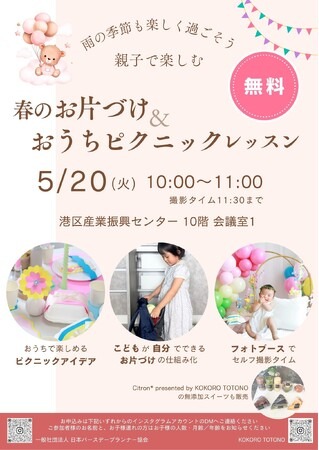イベント名:雨の季節も楽しく過ごそう 親子で楽しむ!春のお片づけ&おうちピクニックレッスン