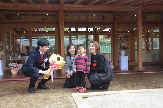 開園式は4月2日(水)、市や園などの関係者が出席して中庭で開かれ、長坂尚登市長や高田洋子園長、園児の代表らがテープカットし、開園を祝いました。