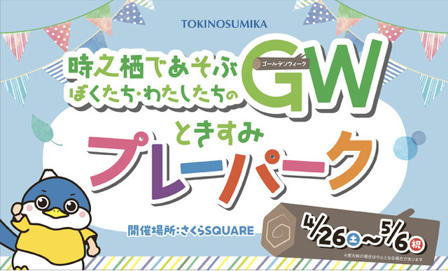 時之栖の公式キャラクター「ときすみとっきぃ」を探す期間限定のスタンプラリーを実施します。園内に隠れたとっきぃを見つけてスタンプを集めると、豪華景品が当たるチャンス!家族みんなで楽しめるスタンプラリーイベントです。