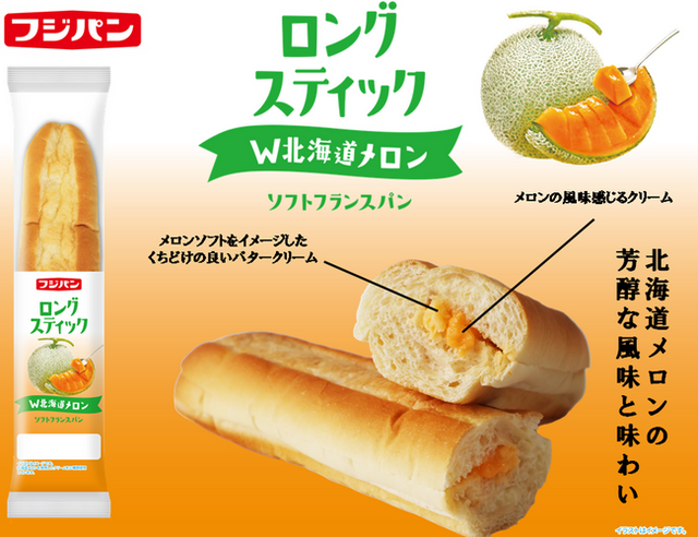 フジパン株式会社(愛知県名古屋市)は、新商品『ロングスティック W北海道メロン』を2025年5月1日(木)より発売いたします。「ロングスティックシリーズ」は、ソフトフランス生地とクリームの組み合わせが人気のシリーズです。今回の『ロングスティック W北海道メロン』は、メロン味のソフトクリームをイメージしたくちどけの良いクリームと、さわやかなメロン風味を感じられるクリームをダブルでサンドしました。ぜひこの機会に、北海道メロンの芳醇な風味と味わいをお楽しみください。フジパン株式会社は商品を通して、お客様の健康と幸せな食卓に貢献できる企業を目指してまいります。