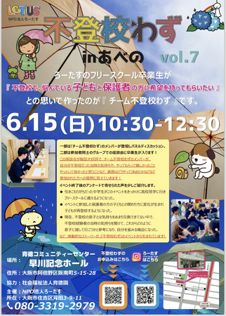 既にvol.8の開催場所が吹田市と決まっていて、フリースクールbon placeとの共催となります。