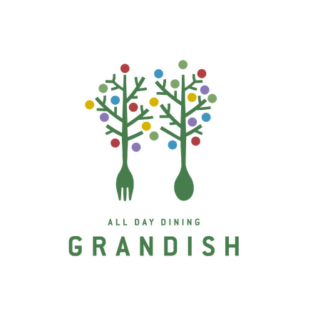 「ALL DAY DINING GRANDISH」のロゴは、食を象徴するカトラリーと、ネスタリゾート神戸の豊かな自然をモチーフにデザインされています。