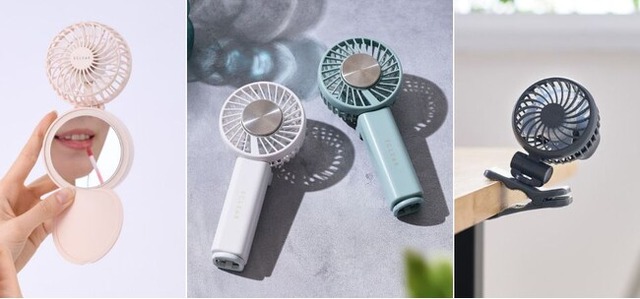 外出先で身だしなみチェックができる「ミラー付き」、肌に直接涼しさを感じられる「冷却プレート付き」、さまざまな場所に取り付けられる「クリップ付き」と、それぞれ異なる特徴を備えています。