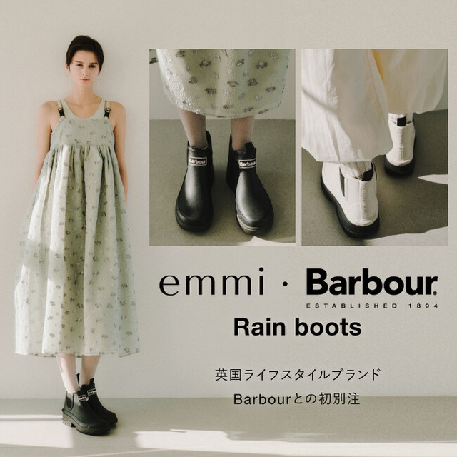 株式会社マッシュスタイルラボ(本社 東京都千代田区/代表取締役社長 近藤広幸)が展開する、デイリーウェアおよびウェルネス&トレーニングウェアを手掛けるレディースブランド「emmi(エミ)」は、ブランド初となる「Barbour(バブアー)」の別注シューズを、4月24日(木)12:00(正午)よりemmiオフィシャルオンラインストア、USAGI ONLINEで予約開始、5月8日(木)よりemmi全国直営店舗で販売開始いたします。