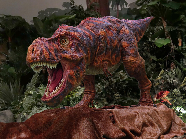 「全長 6m の動くティラノサウルス」が登場するほか、博物館などで展示される骨格標本