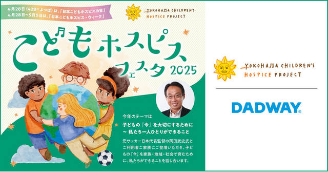 株式会社ダッドウェイ(本社:神奈川県横浜市、代表取締役社長:大野 浩人)は、2025年4月27日(日)に開催される「こどもホスピスフェスタ2025」(主催:認定NPO法人横浜こどもホスピスプロジェクト)に協賛。こどもの大切な時間を育むために、一人ひとりにできることを考える取り組みを応援しています。