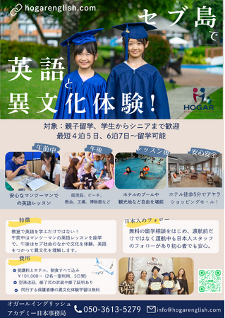 株式会社HOGAR(愛知県豊川市、代表取締役:匹田美由紀、以下オガール)は、フィリピン・セブ島で英語学習だけではなく、観光では体験できない英語圏での異文化体験学習を提供します。