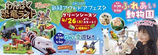 西日本最大級のスキー場「スキージャム勝山」(福井県勝山市、統括総支配人:吉岡 厚志)は、2025 年 4 月 26 日(土)~ 11 月 3 日(月・祝)までグリーンシーズンの営業を開始いたします。またゴールデンウイーク期間中の 2025 年 5 月 3 日(土・祝)~ 5 月 5 日(月・祝)には、スキー場の自然の中で世代を問わず楽しめる「新緑アウトドアフェスタ」を開催いたします。雪の上を走るスリル満点の「雪上バナナボート」や、生き物たちにと触れ合い命の大切さを学ぶ「ふれあい動物園」、ふわふわ遊具を設置した「わんぱく恐竜ランド」などの体験型アクティビティをぜひご家族皆さまでお楽しみください。