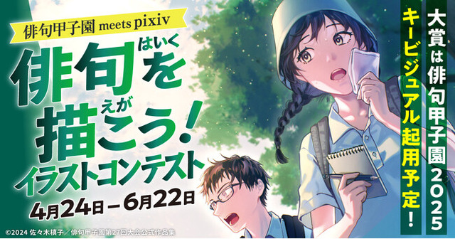 ピクシブ株式会社(本社:東京都渋谷区、代表取締役CEO:丹羽 康弘、以下ピクシブ)は、高校生の俳句大会「俳句甲子園(全国高等学校俳句選手権大会)」とのコラボ企画として、俳句をイメージしたイラストを募集するコンテスト「俳句甲子園 meets pixiv 俳句を描こう!イラストコンテスト」を2025年4月24日(木)より開催します。