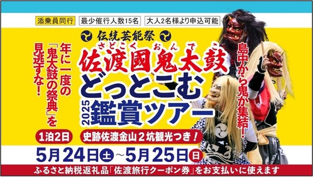 佐渡汽船株式会社(所在地:新潟県佐渡市、代表取締役: 尾渡英生、以下「佐渡汽船」)は、「佐渡國鬼太鼓どっとこむ2025鑑賞ツアー」(5月24日(土)~5月25日(日))を2025年4月22日(火)に発売しました。