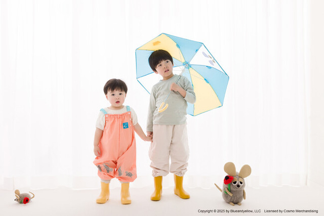 第一弾は傘、レインコート、レインポンチョ、プレイウェアのラインナップ。心踊るポップなバイカラーで雨の日のお出かけをさらに楽しくします。