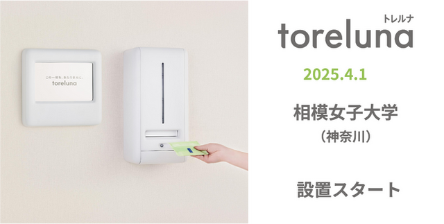 株式会社ネクイノ(大阪市北区、代表:石井 健一)は、トイレの個室で生理用ナプキンを常備し無料で提供するサービス「toreluna(トレルナ)」(以下 トレルナ)を、4月1日より相模女子大学(神奈川県相模原市)へ10台設置し、サービスの提供を開始いたしました。なお、本サービスの女子大学への本導入は、全国で初めての取り組みとなります。