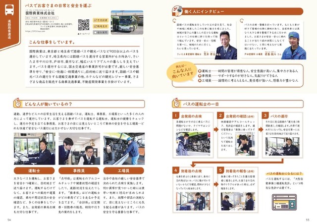 各誌は、当社営業所がある豊島区、練馬区、板橋区、北区やさいたま市、川口市、戸田市など埼玉県東部地区の小学校3、4年生と中学2年生向けに配布され、当社のバス営業所の仕事内容や安全方針について、写真やイラストを用いて解りやすく説明されています。