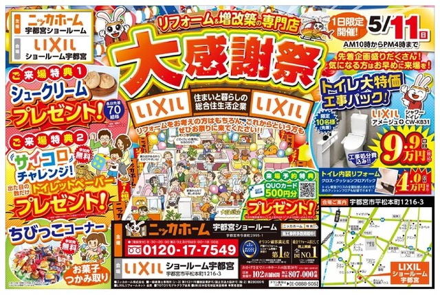 このたび、日ごろの皆さまのご愛顧に感謝しまして、LIXILショールーム宇都宮にて「大感謝祭」を開催します!