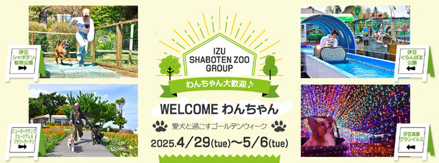 伊豆シャボテン動物公園グループではこの春、愛犬との旅のひとときがより充実したものとなるよう、各施設のドッグランをリニューアルいたしました。また、わんちゃんと一緒に楽しめる・憩える・お買いものができる「WELCOMEわんちゃん」を、2025年4月29日(火・祝)~5月6日(火・祝)まで、伊豆シャボテン動物公園グループの各施設にて開催いたします。
