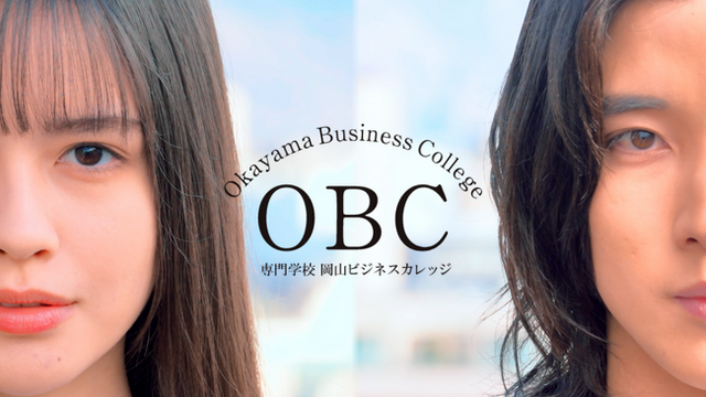 岡山ビジネスカレッジ新CM「何者にでもなってやれ篇」にはモデルの秋本レイラニさんと、岡山ビジネスカレッジの在学生(当時)でありモデルとしても活動する四坂亮翔さんが出演。