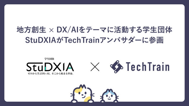 株式会社 TechBowl(本社:東京都千代田区/ 代表取締役:小澤政生/ 以下、当社)の運営するエンジニア向け教育・HRプラットフォーム「TechTrain」において、学生主導でDX/AIを活用した地域や地方自治体の課題解決を中心とした活動をする学生団体「StuDXIA」を新たにTechTrainアンバサダーに迎えました。