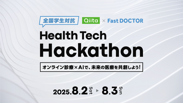 創造性と技術力で多様なITサービスを展開する株式会社エイチームホールディングスのグループ会社であるQiita株式会社(本社:名古屋市中村区、代表取締役社長:柴田健介、以下当社)は、ファストドクター株式会社(本社:東京都港区、代表取締役・医師:菊池 亮、代表取締役:水野 敬志、以下ファストドクター社)と共同で、2025年8月2日(土)・3日(日)に全国の学生を対象としたハッカソン「Qiita × FastDOCTOR Health Tech Hackathon オンライン診療×AIで、未来の医療を共創しよう!」を開催します。また、本ハッカソンの開催に伴い、出場チームを募集します。