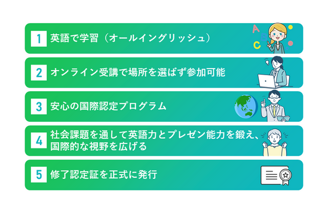 - 安心の国際認定プログラム世界的に認証を受けた教育機関Nisaiによる研修カリキュラムを採用し、正式な修了証(PDF形式)を発行。大学出願時のポートフォリオとして強みになるでしょう。